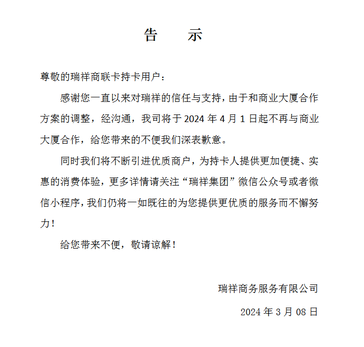 關于張家港商業(yè)大廈暫停合作公告